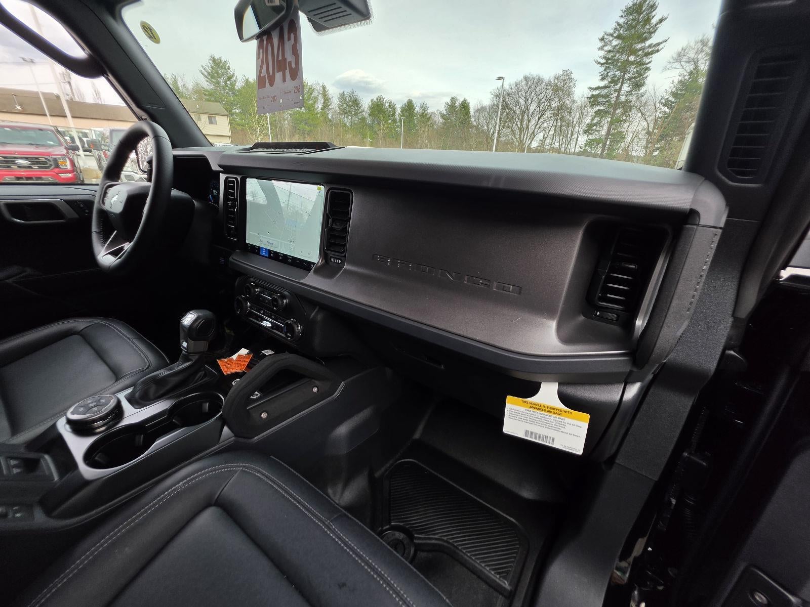 Finished in Shadow Black with durable black vinyl seating, this Bronco is heavily equipped with off-road upgrades including the Black Diamond and Sasquatch packages, making it an exceptional adventure-ready SUV.